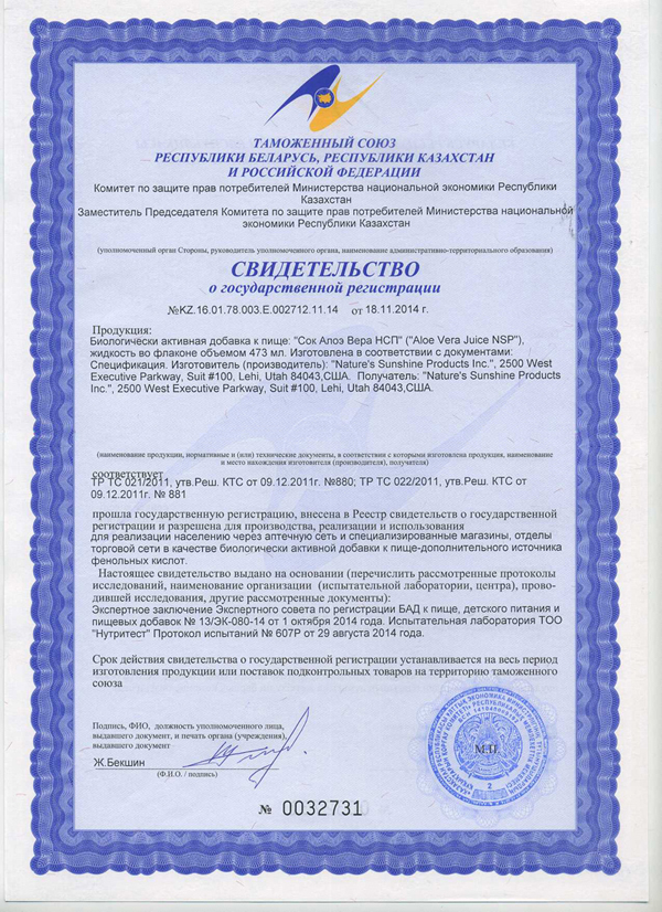 БАД к пище Сок Алоэ Вера HCП является дополнительным источником фенольных кислот.