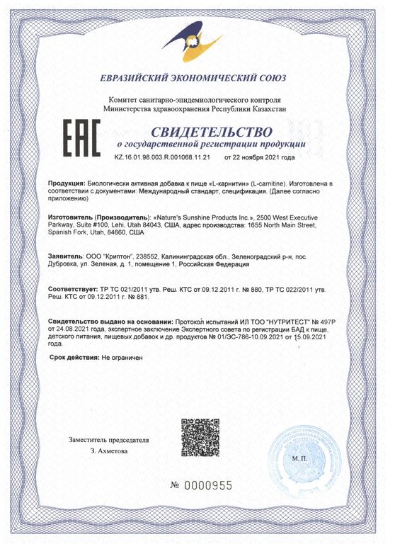 БАД к пище L-карнитин является дополнительным источником L-карнитина.