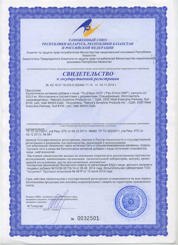 БАД к пище По Д’Арко НСП является дополнительным источником хлорофилла, меди, нафтохинонов.