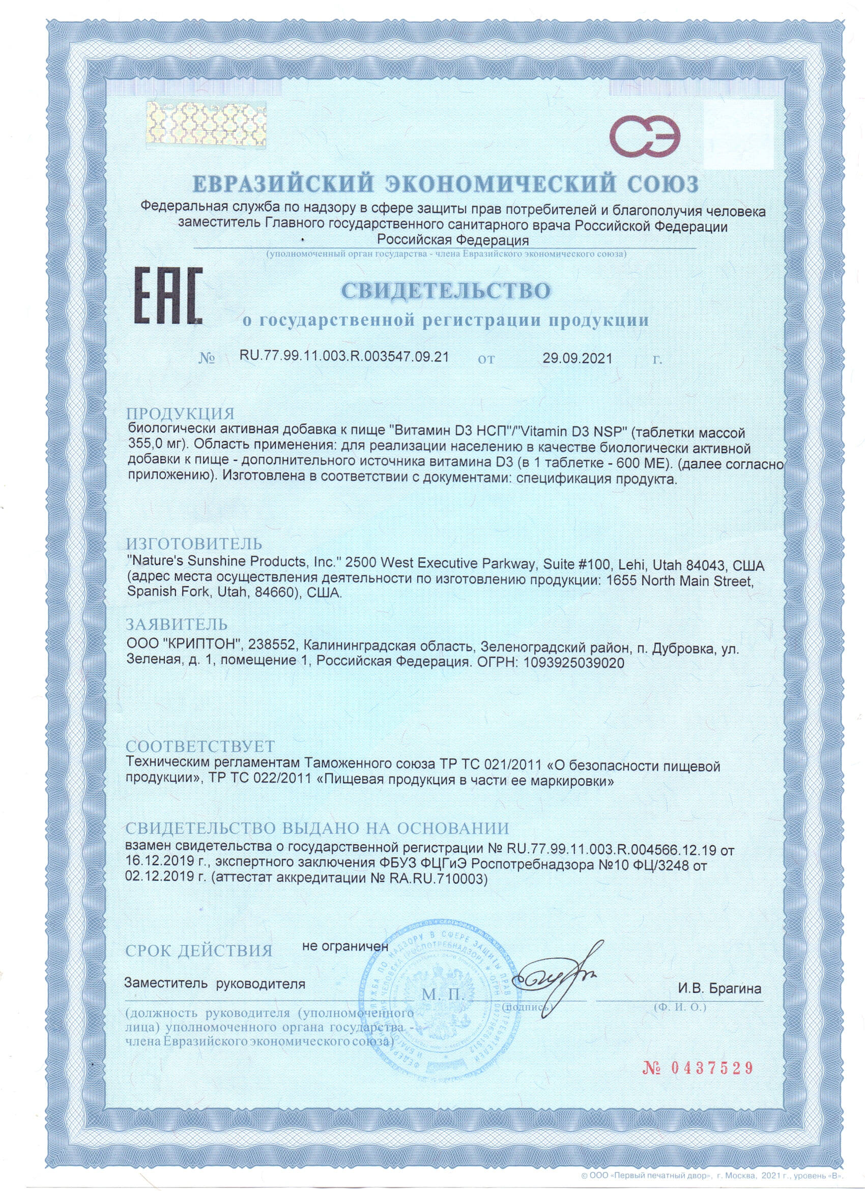 Витамин D– это нутриент, гормон и иммуномодулятор. Витамин D (кальциферол)– жирорастворимый витамин-производное дегидрохолестерола, образуется в нашем организме (в коже) под действием ультрафиолетовых солнечных лучей в виде витамина D3 (холекальциферол). Существует, кроме того, менее активный вид этого витамина,который образуется в коже человека из растительной пищи, богатой эргостерином – D2 (эргокальциферол). Из кожи витамин Dпоступает в печень, где превращается в форму гормона, который регулирует гомеостаз кальция, а затем в почки. Эта активная форма витамина D вызывает в кишечнике и в почках образование специфического кальций-связывающего белка, который усиливает всасывание кальция в тонкой кишке и одновременно ускоряет его всасывание в почках, возвращая этот микроэлемент в кровь и уменьшая его потери с мочой. Дефицит витамина D может возникать при нехватке в питании, при недостаточном его образовании в коже при действии солнечного света, при заболеваниях печени и почек. Россия и другие государства нашей полосы расположены в зоне низкой инсоляции, поэтому практически все их жители входят в группу риска по дефициту витамина D. Витамин D необходим не только для регуляции уровня кальция в крови и минеральной плотности костной ткани. Установлено, что многие органы и ткани нашего организма имеют рецепторы витамина D, а значит, витамин D воздействует не только на костную ткань, но и на многие другие органы и системы. Как гормон он также вовлечен в регулирование больше, чем 200 генов тела (организма) и имеет многофункциональное действие. Хронический дефицит витамина D является фактором риска развития ряда тяжелых заболеваний с длительным неактивным периодом. Для здоровья опорно-двигательной системы: витамин D необходим для регуляции обмена кальция и фосфора при формировании костной ткани, зубов и для профилактики и лечения остеопороза. Увеличивает всасывание кальция и фосфора в тонком кишечнике, обратное всасывание кальция в почках. Увеличивает выработку гормона паращитовидной железы (парат-гормона) и активность клеток остеокластов, регулирующих поступление кальция в кровь при дефиците кальция крови. Для здоровья иммунной системы: витамин Dподдерживает врожденный и приобретенный иммунитет, влияет на функцию клеток крови лимфоцитов и активность клеток крови –макрофагов, производство факторов воспаления – цитокинов, увеличиваетпродукцию интерлейкина-1 и простагландина Е2. Участвует в синтезе собственного интерферона. Установлена иммуномодулирующая роль витамина D, он формирует противовирусный и антибактериальный иммунитет (при туберкулезе) с выработкой антител. Под влиянием витамина D происходит образование клеток крови. Для здоровья кожи: витамин D регулирует размножение и разновидность клеток кожи и может быть использован при лечении псориаза, витилиго и онкологии. Уменьшает риск и проявления аутоиммунных реакций. Эндокринная система: витамин D регулирует функцию щитовидной железы, поджелудочной железы, половых желез; регулирует эмбриональное развитие плода, сперматогенез и репродуктивную функцию, регулирует ДНК. Снижает риск сахарного диабета 1 типа (увеличивает секрецию инсулина). Поддерживает здоровье барьерных систем: дыхательной системы и кишечника. Регулирует важные процессы жизненного метаболизма: с